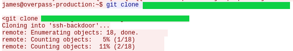 The attacker proceeds to clone a Github repository to the target machine which enables them to create an SSH backdoor.