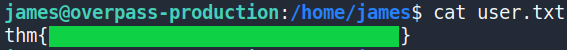 Once logged in, I can navigate to the home directory for James and retrieve the user flag.
