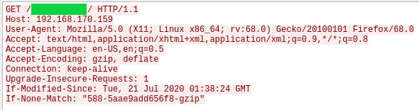 Looking at the first TCP packet in the stream, I can see the URL of the page used by the attackers to upload their reverse shell.