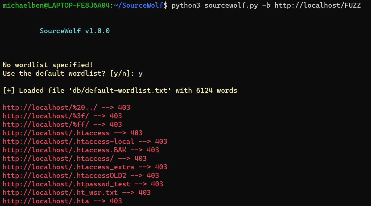 SourceWolf replace the FUZZ keyword from the -b value with the words from wordlist, and sends the requests. This enables you to brute force get parameter values as well.-s will store the output in a file called status
