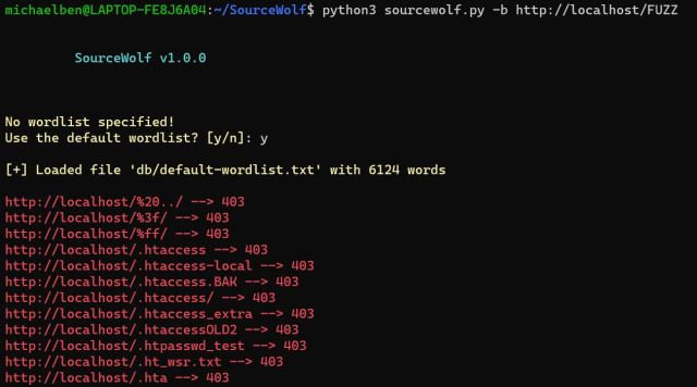 python3 sourcewolf.py -b https://hackerone.com/FUZZ -w /path/to/wordlist -s status