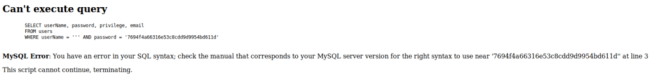 It makes sense to look at the source code first, but nothing interesting here. I like going through the different web pages with an attack proxy running in the background. Everytime a pentester sees an upload functionality, you know it’s going down. Login forms are also nice to play around with. I like to enter ‘ as the username and a random password. Sometimes the web page responds with a syntax error or an error page, just like this: