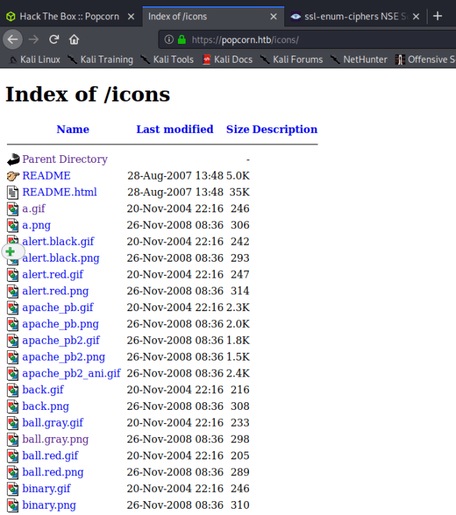 The icons/ directory is also interesting. Directory listing would also be a finding in a pentest report. The webserver should be configured to prevent this finding. There is no reason to provide directory listings: