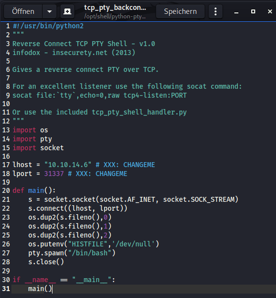 I will be using the tcp_pty_backconnect.py script from this github site. We’ll just have to change the IP address:
