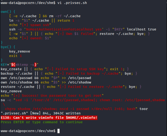 To use the exploit, we’ll copy it’s content, e.g. using gedit and then pasting it into a new file on the popcorn machine.