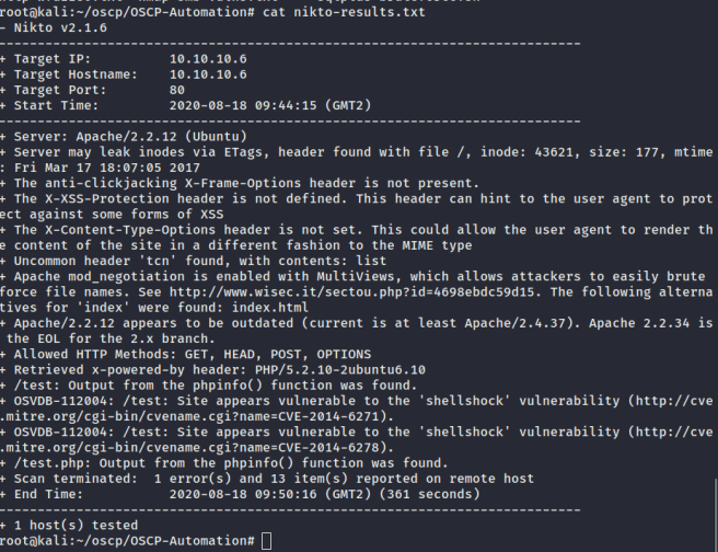 nikto -h popcorn.htb -o nikto.txt -p 80