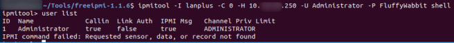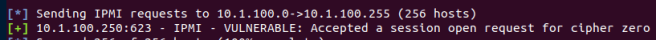 Dan Farmer is a pioneer in the research of BMC/IPMI associated vulnerabilities. You can read more about how to exploit cipher 0 with the native ipmitool utility on his site: http://fish2.com/ipmi/cipherzero.html. Right now it seems to be down, but you can always read google’s cached versions. Anyways, here you can see how we logged in with a random password. Pay attention to the “-C 0” part.
