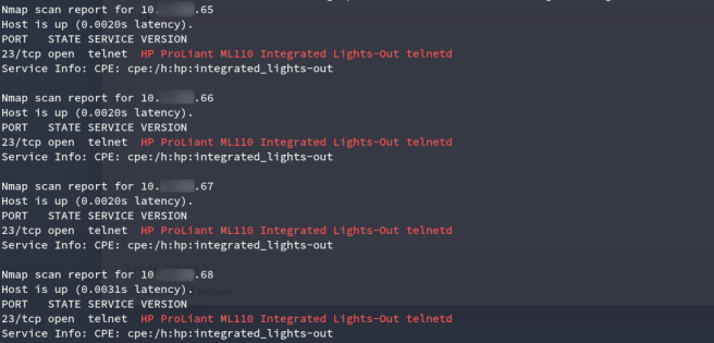 Whenever you’re doing an infrastructure pentest and you compromise a machine in a new segment of the network, you should re-do your scans to check if you have new visibility. This DB allowed us to reach the company’s cloud network, including most of the virtualized instances, as well as the hosts. We were really excited to get the results of the new scan and see amongst them multiple BMC devices.