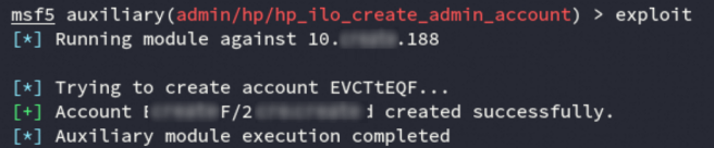 There were a couple of HP ILO devices which we were unable to crack. Lucky for us, there’s also an authentication bypass in HP iLO 4, from versions 1.00 to 2.50. This allows you to create an admin account through a buffer overflow in the Connection HTTP header, handled by the webserver (https://cvedetails.com/cve/CVE-2017-12542/). The exploit uses this BO to get privileged access to the rest API, which in turn gives you accounts creation permissions.