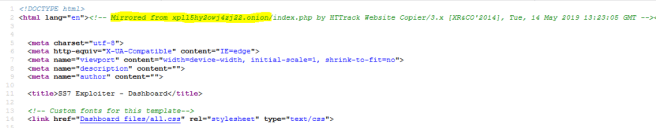 Upon checking the source code of the same, it is found that the SS7 Exploiter Dashboard is being mirrored (copied) using popular software HTTRACK (Open-Source Website Copier) from another Onion Domain xpll5hy2owj4zj22.onion which was active in the September, 2019 (not active anymore ATTOW). It can be assumed that the expired onion service might also be a scam page like SS7 Exploiter.