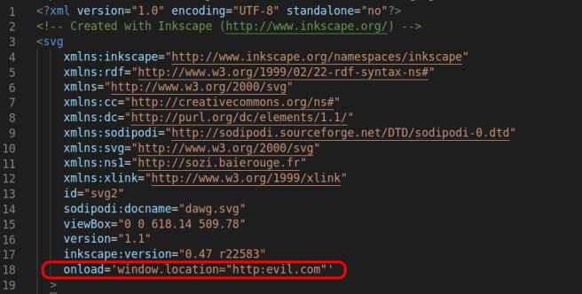 Find an SVG image and open it by an text editor. Add the following code and upload it on the Internet.