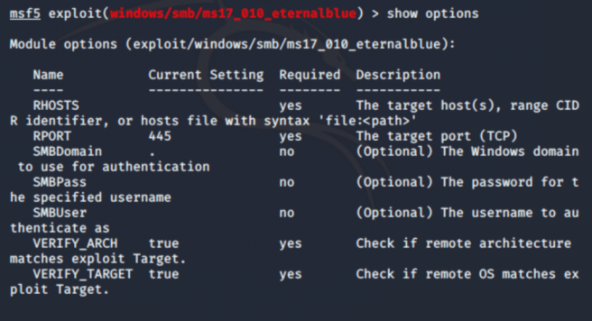 >use exploit/windows/smb/ms17_010_eternalblue