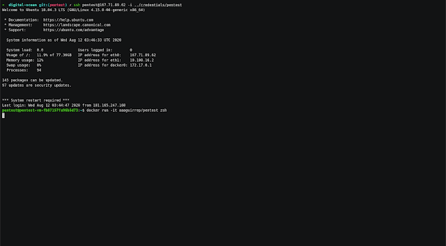 Create a VPS on Google Cloud Platform or Digital Ocean easily with the docker for pentest included to launch the assessment to the target.