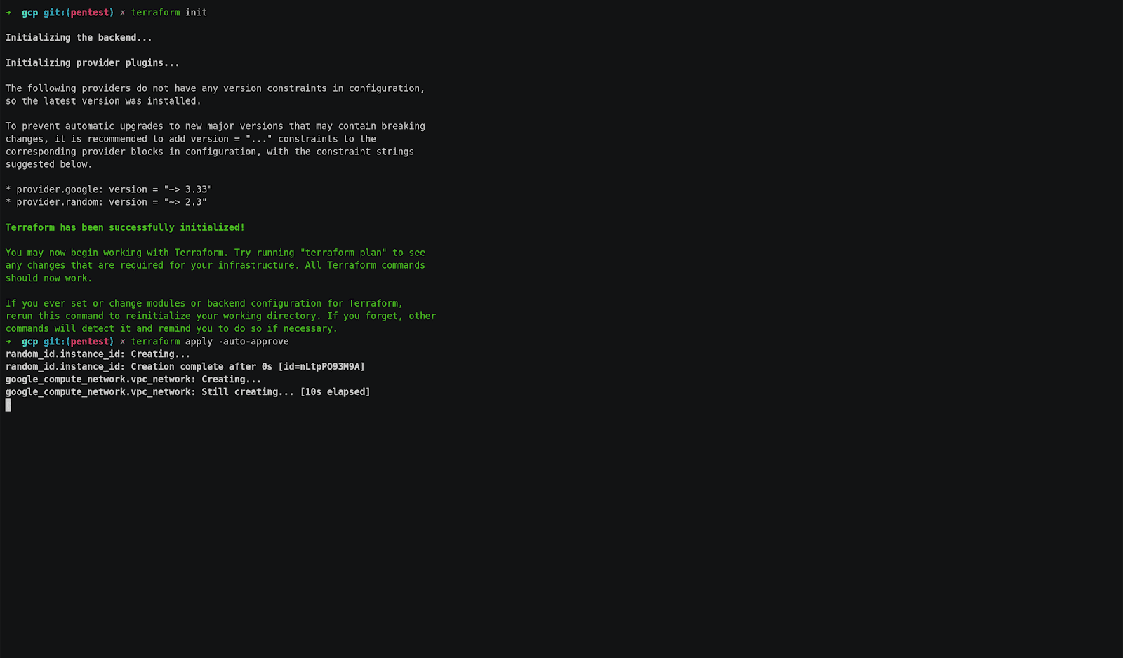 Note: The instance type and the region used are: n1-standard-1 and us-central1. You can change the values on server.tf and main.tf