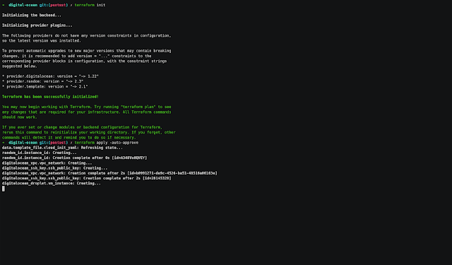 Note: The droplet type and the region used are: s-2vcpu-4gb and nyc3. You can change the values on server.tf and variables.tf