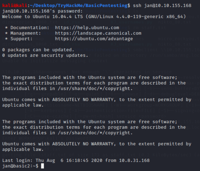 TryHackMe Basic Pentesting Walkthrough. was originally published in InfoSec Write-ups on Medium, where people are continuing the conversation by highlighting and responding to this story.