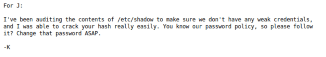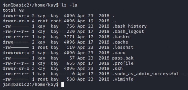 It seems we’ve found “k” and “j” users first showed up in the dev notes. As the SSH port is open and we know that Jan has a weak password from the Kay note (j.txt), let’s run hydra for cracking Jan’s password and getting inside the server.