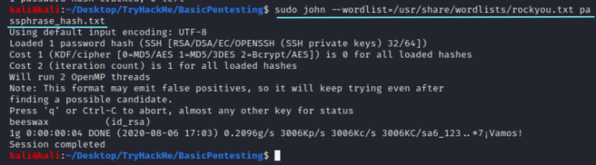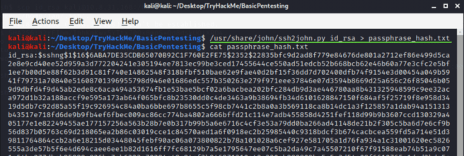 Now, we can use the standard John The Ripper in order to crack this hash and extract SSH private key passphrase.