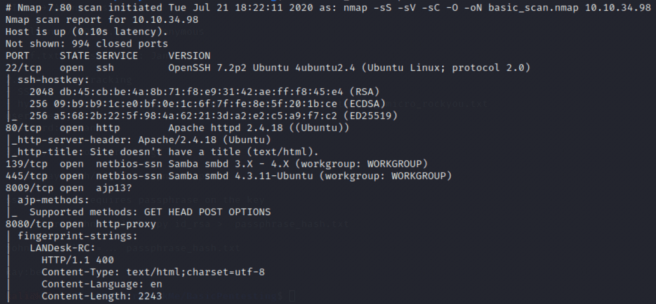 - Nmap -sV -sC -O <ip-addr> -oN basic_scan.nmap