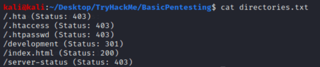 gobuster dir -u <URL> -w /usr/share/wordlists/dirb/common.txt -o directories.txt