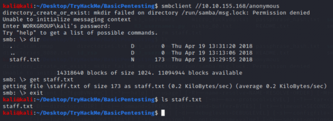 staff.txt might contain some useful information, so let’s get it into our computer with get staff.txt command.