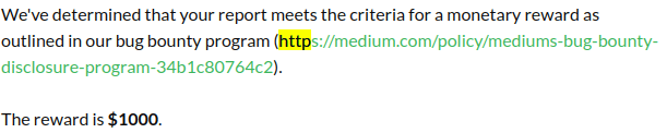According to Medium’s bug-bounty page, they are only paying $100 for XSS, but I wanted to go for the jackpot: