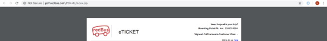 On clicking the link , I got redirected to some other subdomain “pdf.redbus.com” which displayed the pdf version of my ticket.