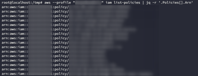 aws --profile "$profile" iam list-policies | jq -r ".Policies[].Arn"