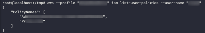 aws --profile "test" iam list-user-policies --user-name "test-user"