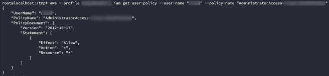 aws --profile "test" iam get-user-policy --user-name "test-user" --policy-name "test-policy"