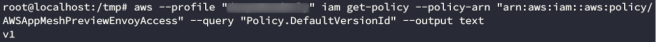 aws --profile "$profile" iam get-policy --policy-arn "$i" --query "Policy.DefaultVersionId" --output text