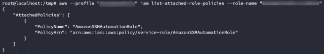 aws --profile "test" iam list-attached-role-policies --role-name "test-role"