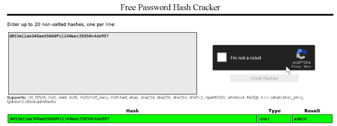 - Now open that file using Notepad and there we can see admin credentials. but the password is encrypted .from pattern I identified that this is MD5 hash. so we can easily decrypt using crackstation.net or any hash cracker tools like Hashcat, John the ripper.