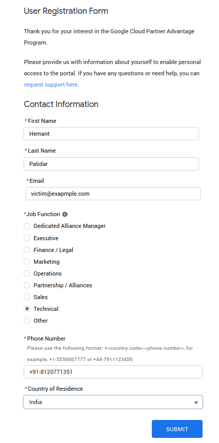 Today I will share the write-up of my first accepted bug in Google, Which is in “Google Cloud Partner Advantage Portal” where I was able to modify personal details for victim account via Broken Authentication.