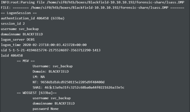 pypykatz lsa minidump /home/sif0/htb/boxes/Blackfield-10.10.10.192/forensic-share/lsass.DMP