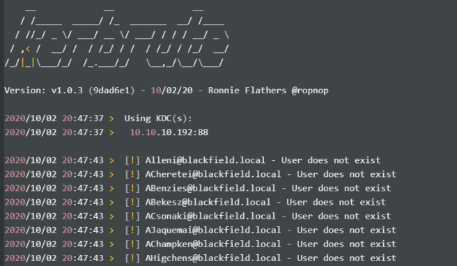 kerbrute_linux_386 userenum --dc 10.10.10.192 -d blackfield.local users.txt --safe -v