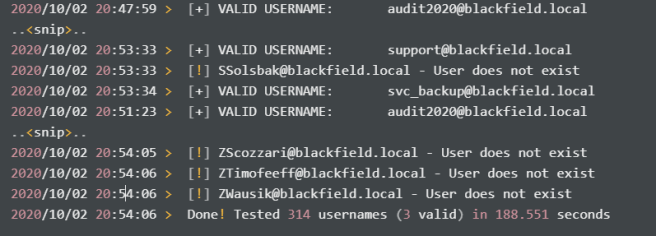 Eventually, there are only 3 valid usernames out of 314.