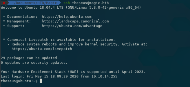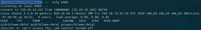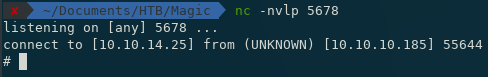 Whenever I get a shell as www-data, I always check the /var/www directory for artifacts that can give me clues on how I can move forward to the next user. Upon enumeration of the said directory, I saw a lot of files under /var/www/Magic , the most notable of which has a filename db.php5 .