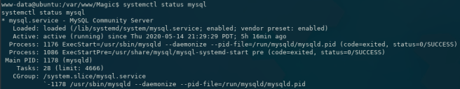 Going back to db.php5 file, I noticed that it’s a mysql db file. Upon checking if the service is running, I saw the following: