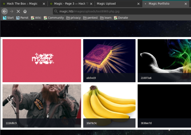Magic is a Medium difficulty machine from Hack the Box created by TRX. My process involved a simple SQLi, Steganography, and Binary Planting.