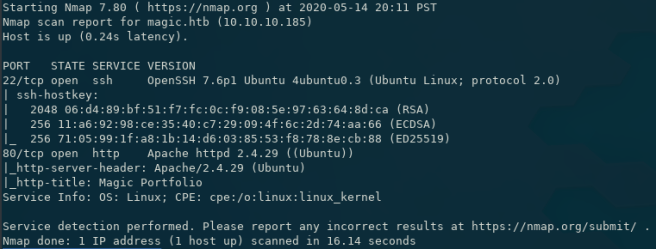 $ nmap -sC -sV -T4 -p 22,80 magic.htb -oN nmap.txt