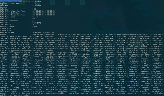 I used the exiftool module Comment where we can write the reverse shell payload that we intend to run as a comment in an arbitrary medium. Since the web feature requires a jpg, jpeg, or a png, I used an actual picture as my medium, and then a php script from pentestmonkey as my reverse shell.