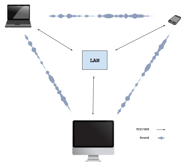 An obvious limitation (feature) of the current approach is that only nearby devices (e.g. within the same room) can establish connection with each other. Moreover, the devices have to be connected in the same local network, because NAT is not available.