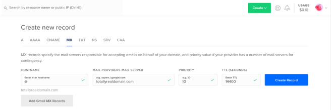 The priority is used when load balancing traffic between different mail servers. We don’t need this since we’ll only have one, so we’ll just leave it at 10.