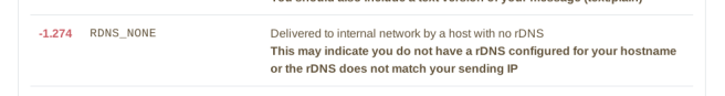 One of the observations we got was that our server didn’t have a valid PTR DNS record. This is also known as a reverse lookup, and allows you to query an IP on a DNS server and get the associated hostname.