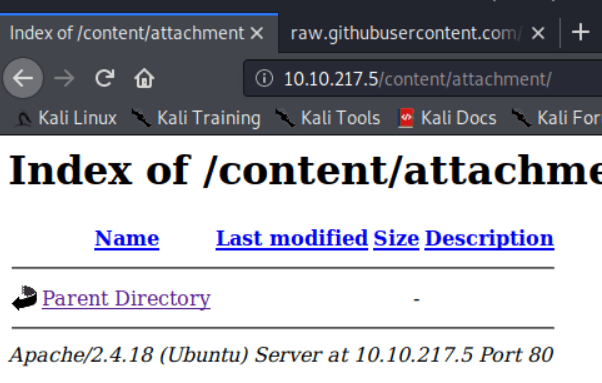 Remember earlier on we found a directory in gobuster that was actually empty but it won’t be now. Or maybe it is. Let’s find out.
